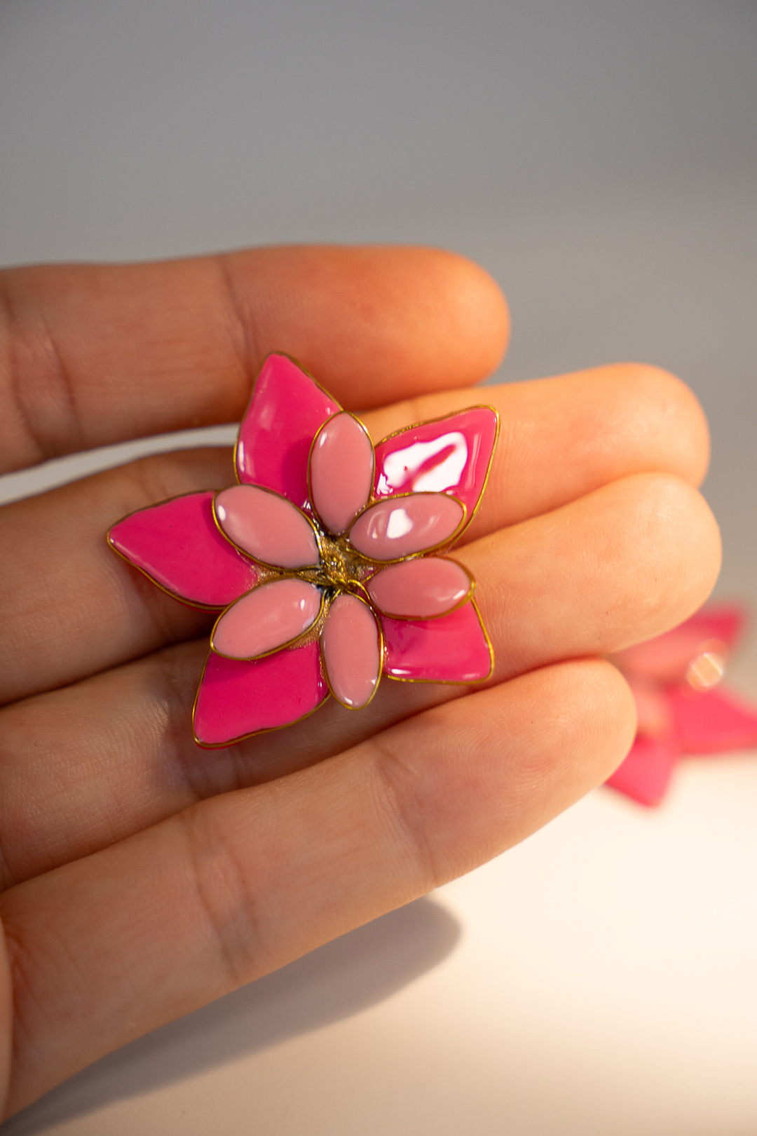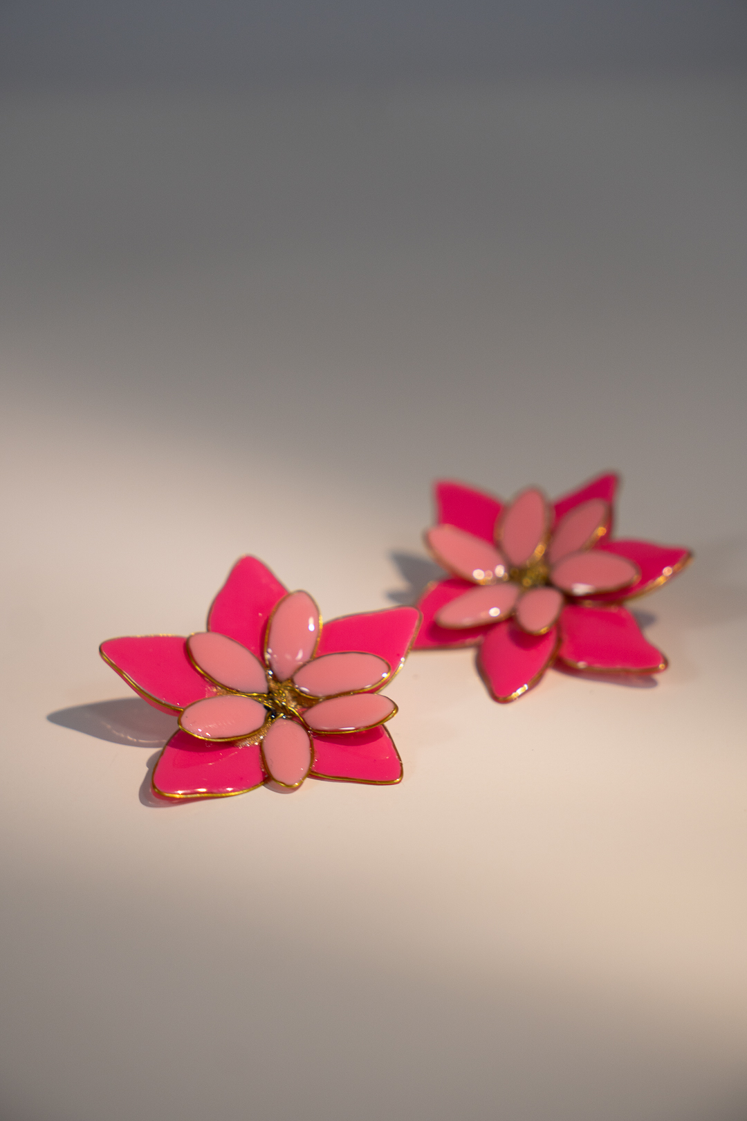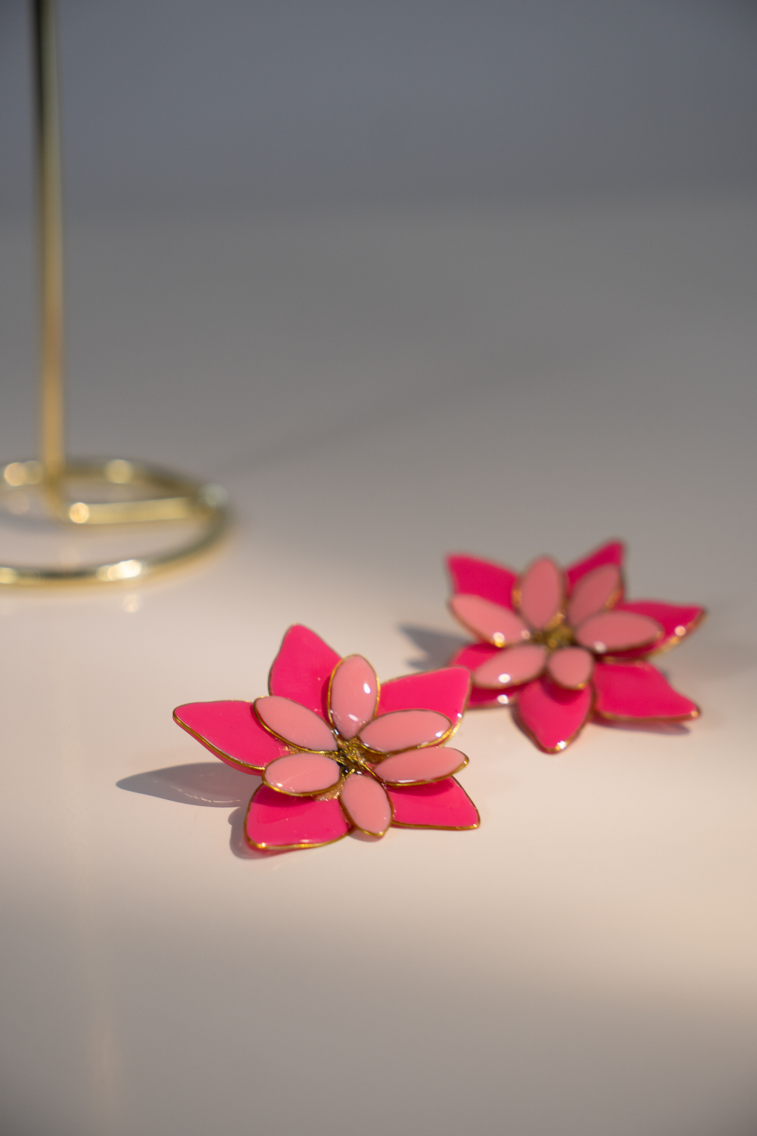 Pendientes hechos a mano,modelados cuidadosamente en alambre y esmaltes de rosados, con un cierre de mariposa en acero inoxidable.